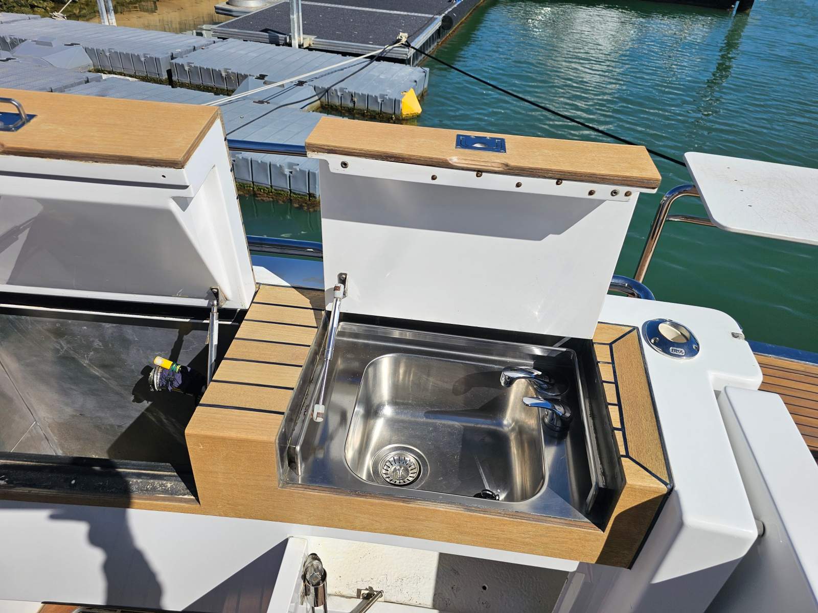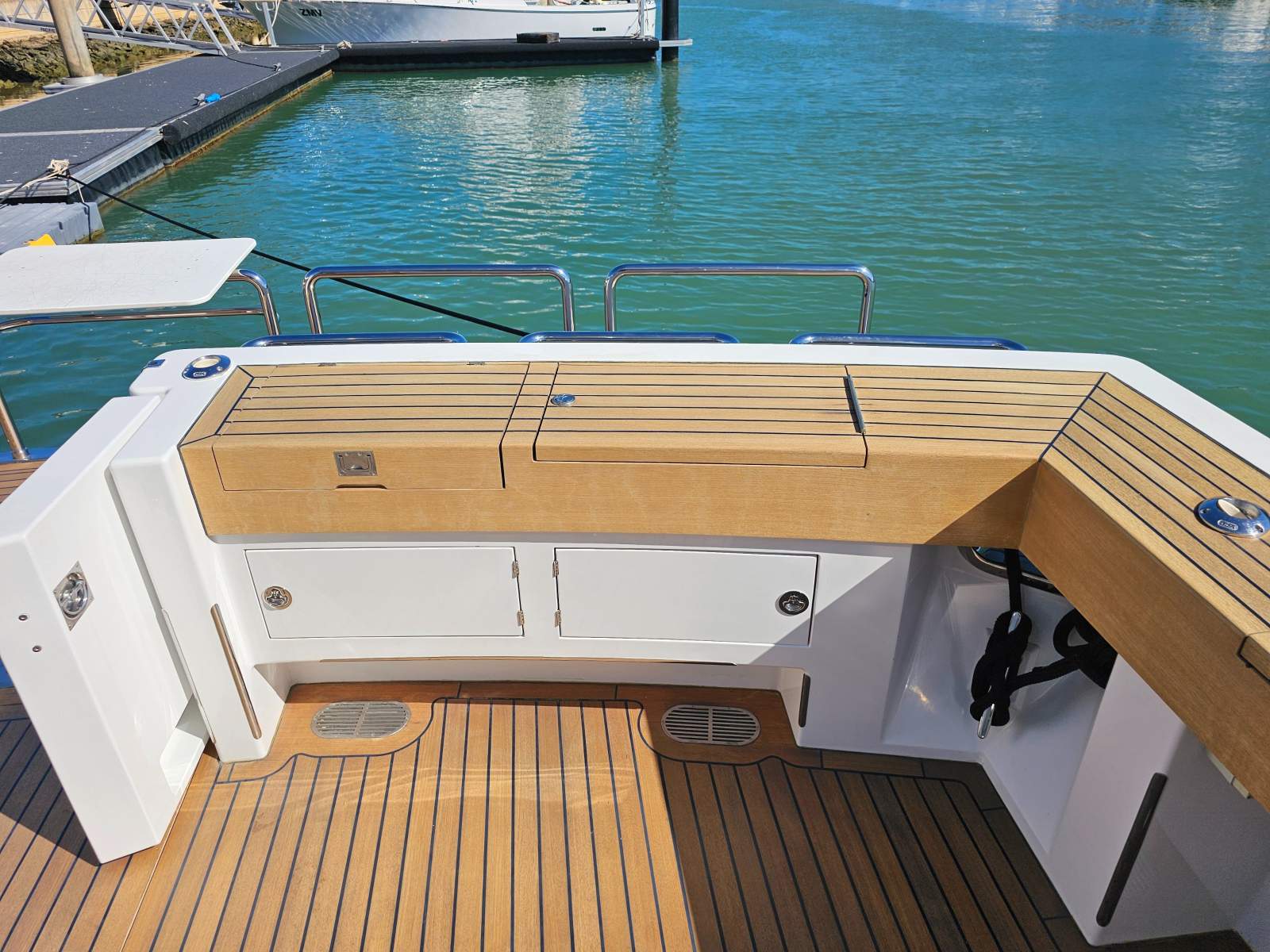 Elegant Interiors for Entertaining: Her sophisticated saloon and fully equipped galley are ideal for hosting. With luxurious finishes, thoughtful design, and ample space, she easily doubles as one of the most unique luxury entertainment boats in her class.