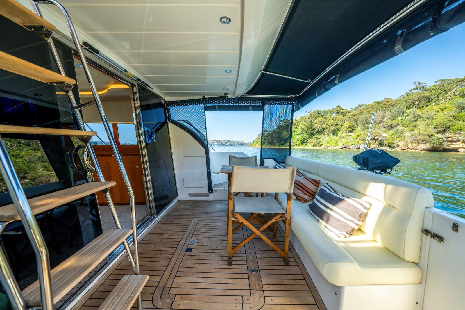 Powered by reliable twin Caterpillar 3208 diesel shaft drive engines, she offers the perfect balance of efficiency and power for Sydney Harbour cruising, weekend getaways, or extended coastal adventures.