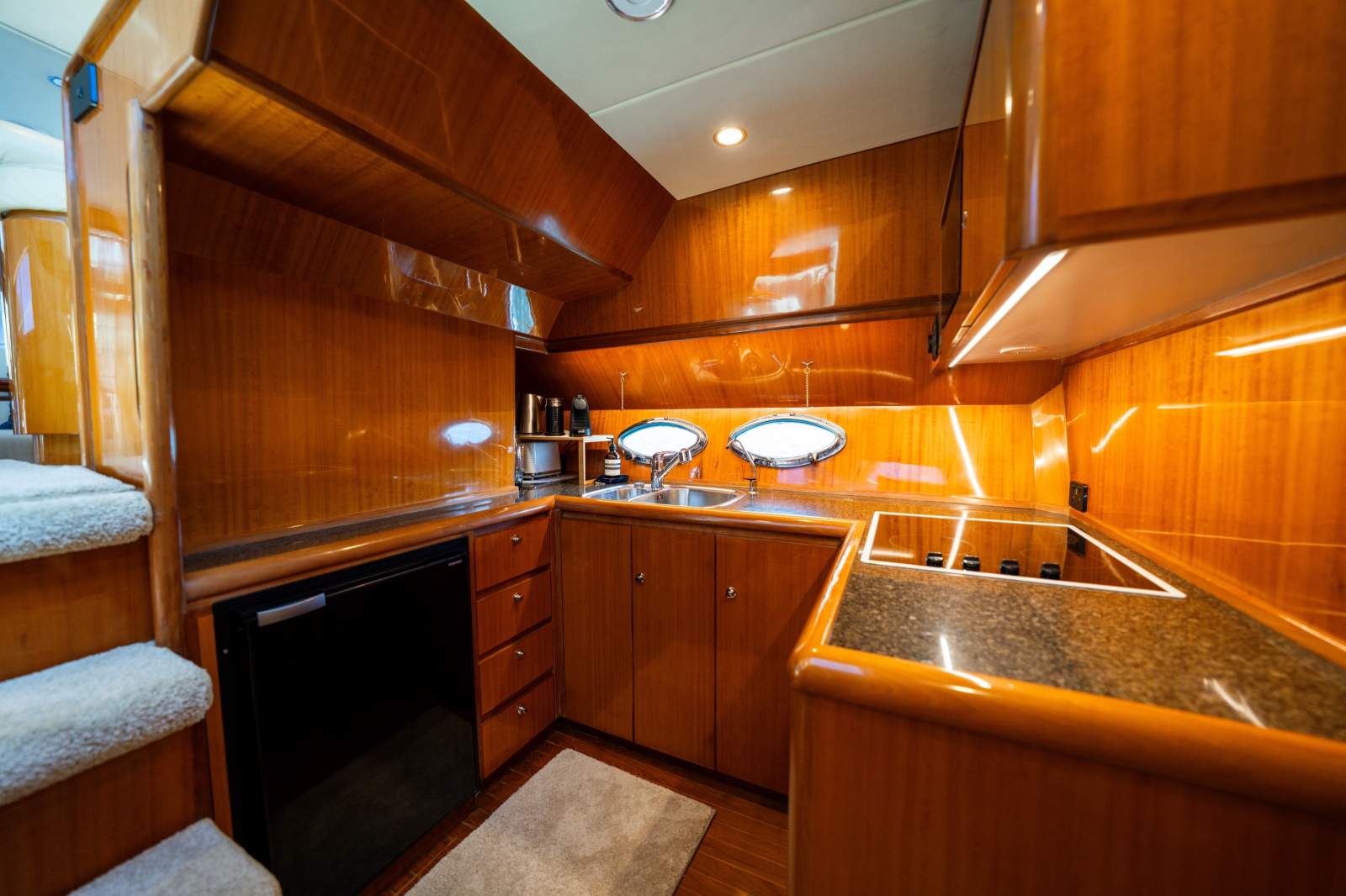 Refrigeration: Full size fridge in galley, pull out draw fridge in saloon, ice maker in saloon, fridge on flybridge