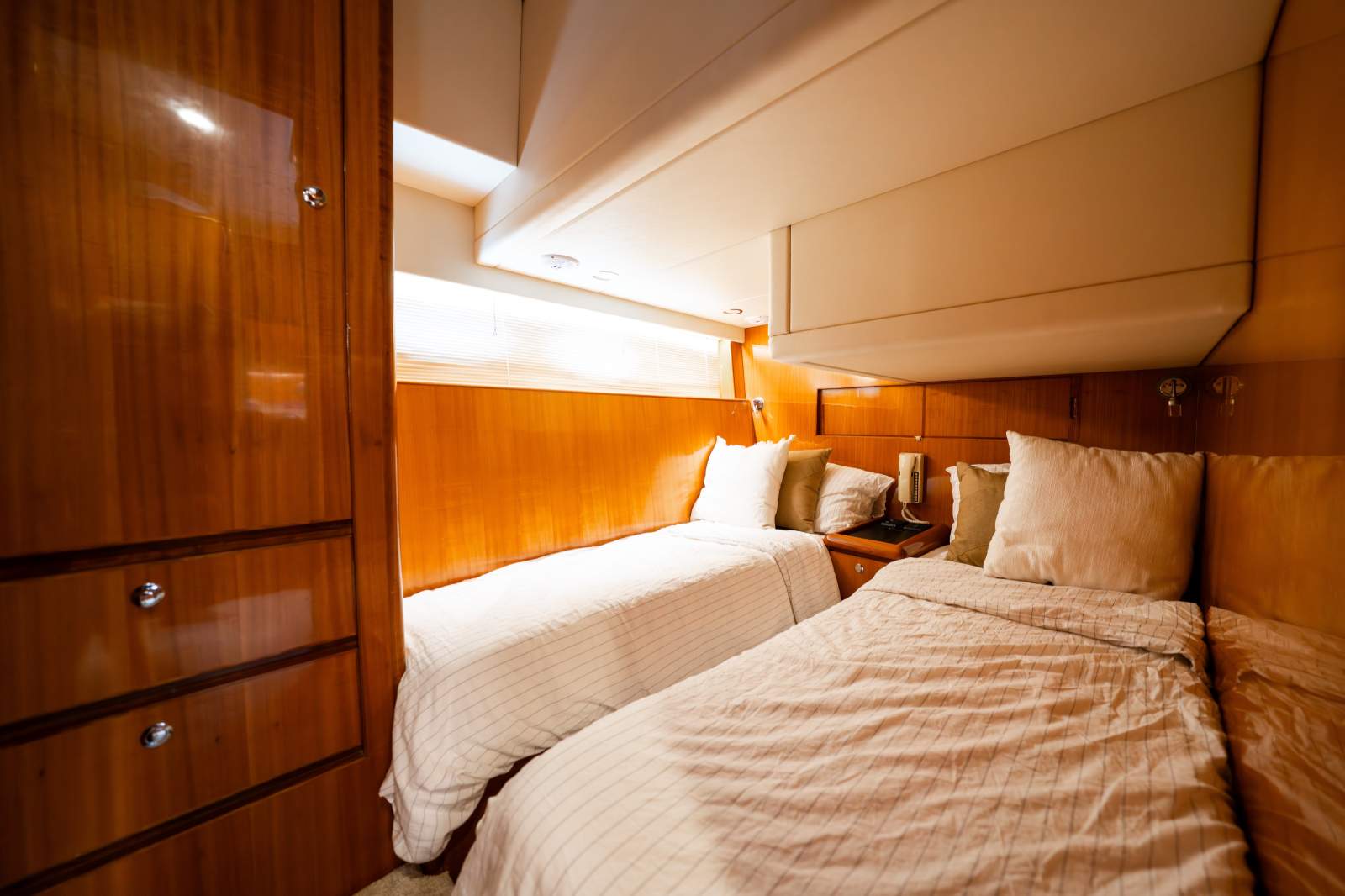 o Twin Caterpillar 3208 diesel engines, known for reliability and smooth cruising