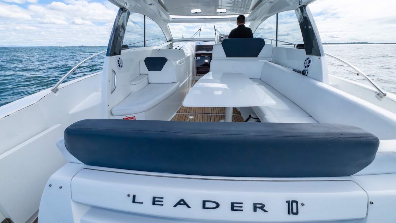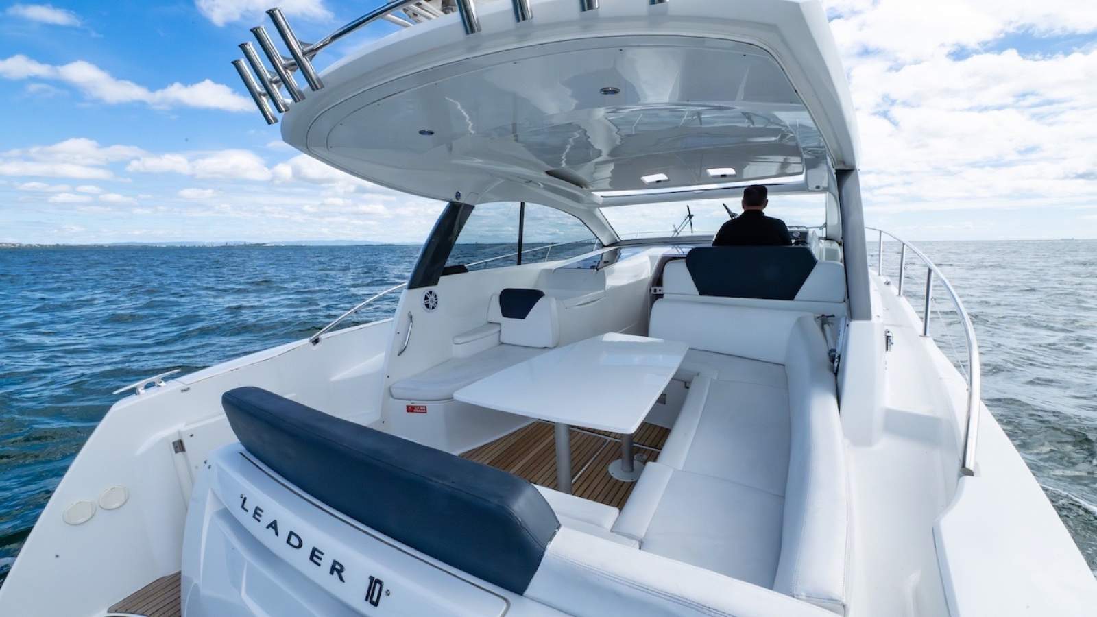 Offering the reliability of diesel power and the sporty handling of duo-prop sterndrives, this spacious Jeanneau Leader 10 is at the top of the bunch for family cruising and entertaining on the water.
