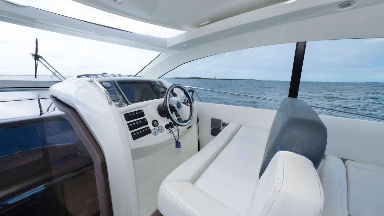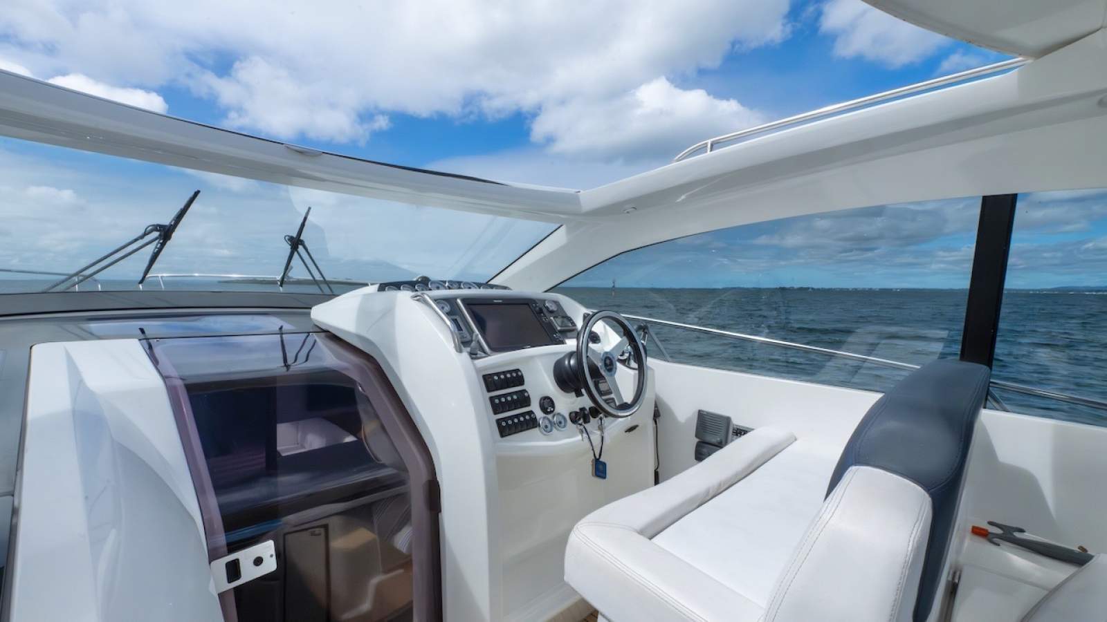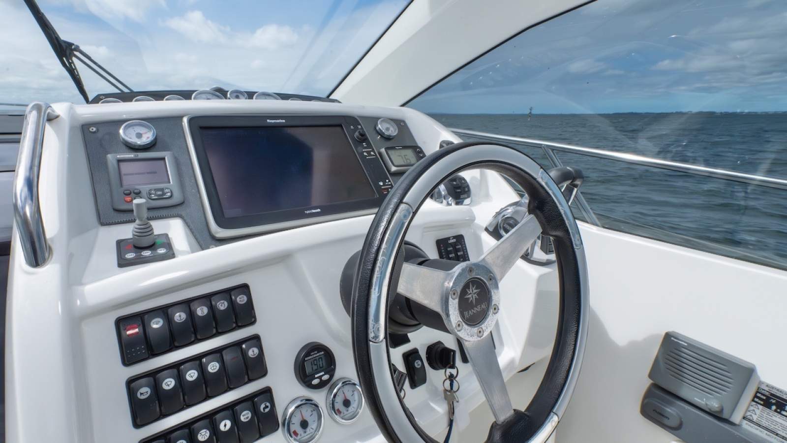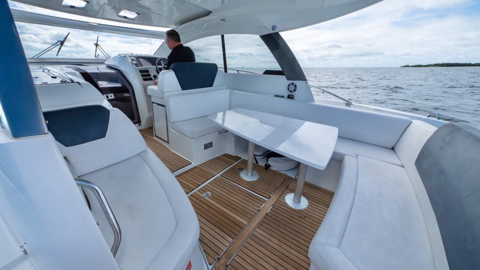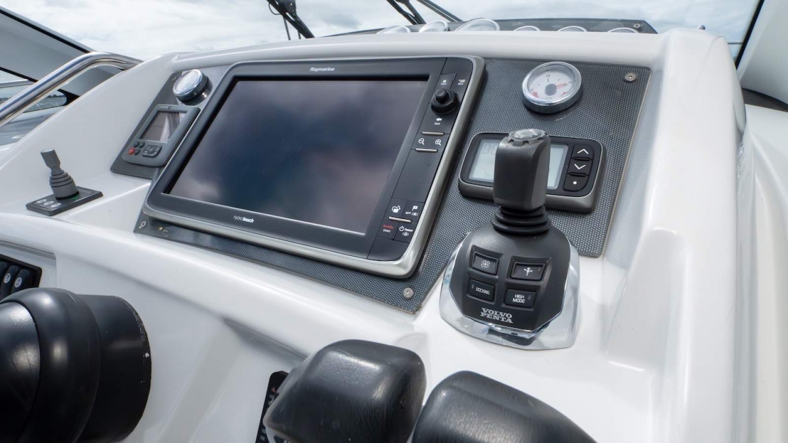 The ergonomic helmstation provides a perfect view forward whilst underway and the skipper will also find that he can see every part of the boat he needs to while docking. There's a complete Raymarine touchscreen plotter/sounder system, VHF transceiver, Lenco Trim Tabs and Volvo Penta electronic Throttle and Shift controls with Joystick docking that all make management of the boat simple and easy.
