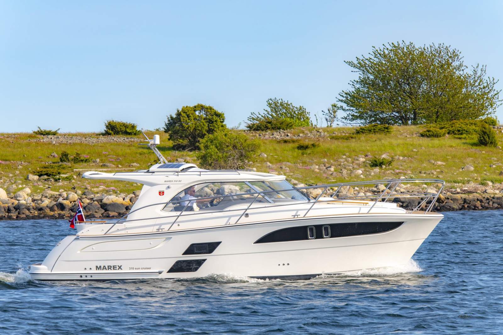 Marex 310 Sun Cruiser is an elegant and innovative 31-foot boat fashioned on current trends and customer needs. The 310 Sun Cruiser mixes a classic hull style with a sports spirit, rounded bow and smooth profile lines. Being the smallest in the Marex range, it is the perfect Cabin Cruiser for four guests, designed to deliver the ideal combination of comfort and space for families and friends.