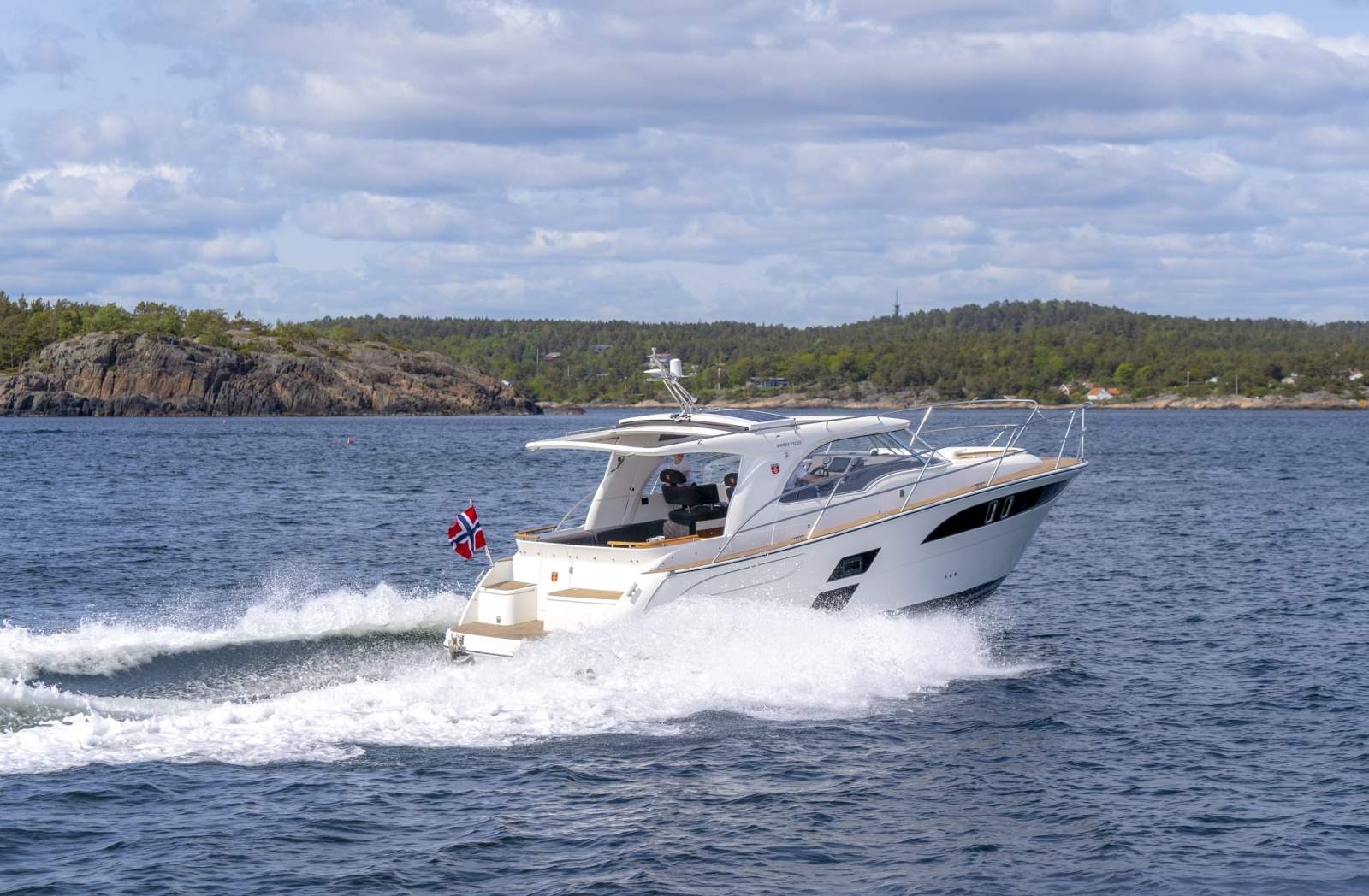 The cockpit canopy solution is the most exciting and innovative detail distinguishing the 310 Sun Cruiser from similar pleasure boats. It is the world's fastest system, which allows the side curtain to be closed quickly by pulling it out from the side vertical compartment. This will enable guests to quickly open the cockpit to the sun or close it in a sudden rain while prolonging the boating season. In addition, two sliding sunroofs over the cockpit can be opened or fixed in several positions, providing the necessary level of shading/sun.