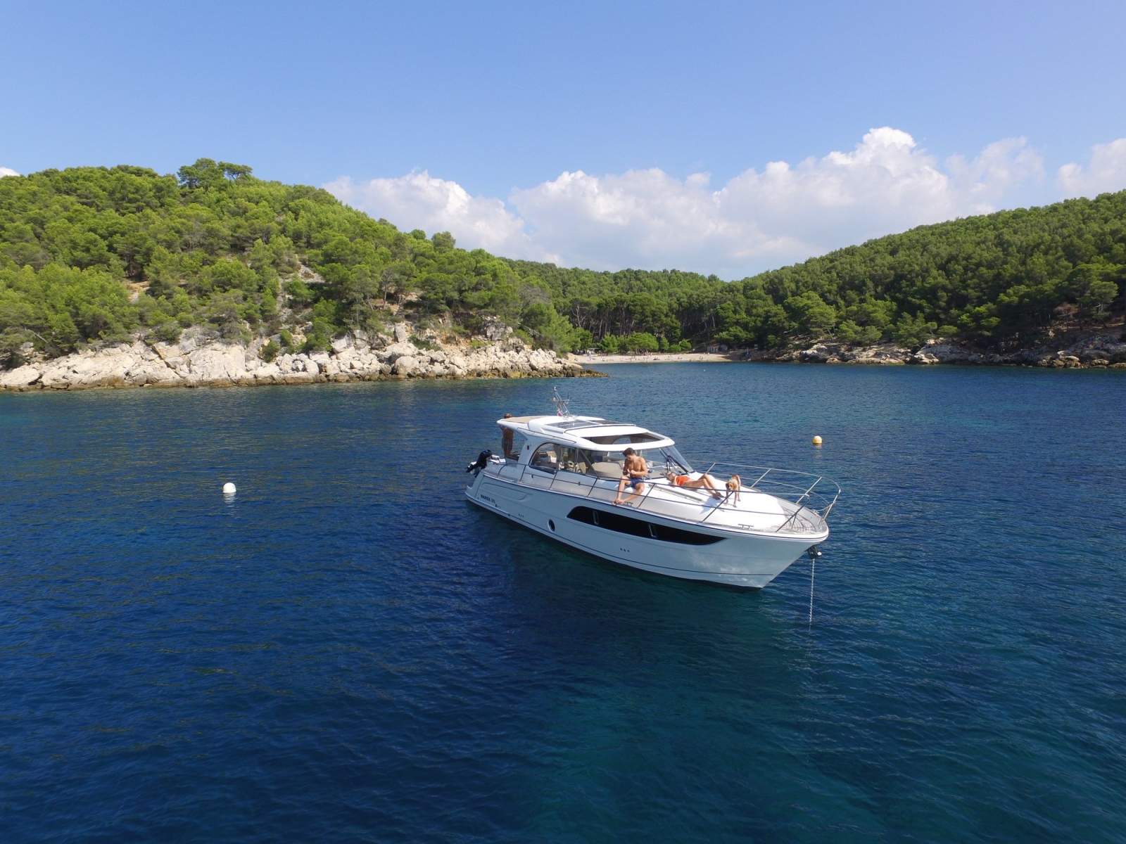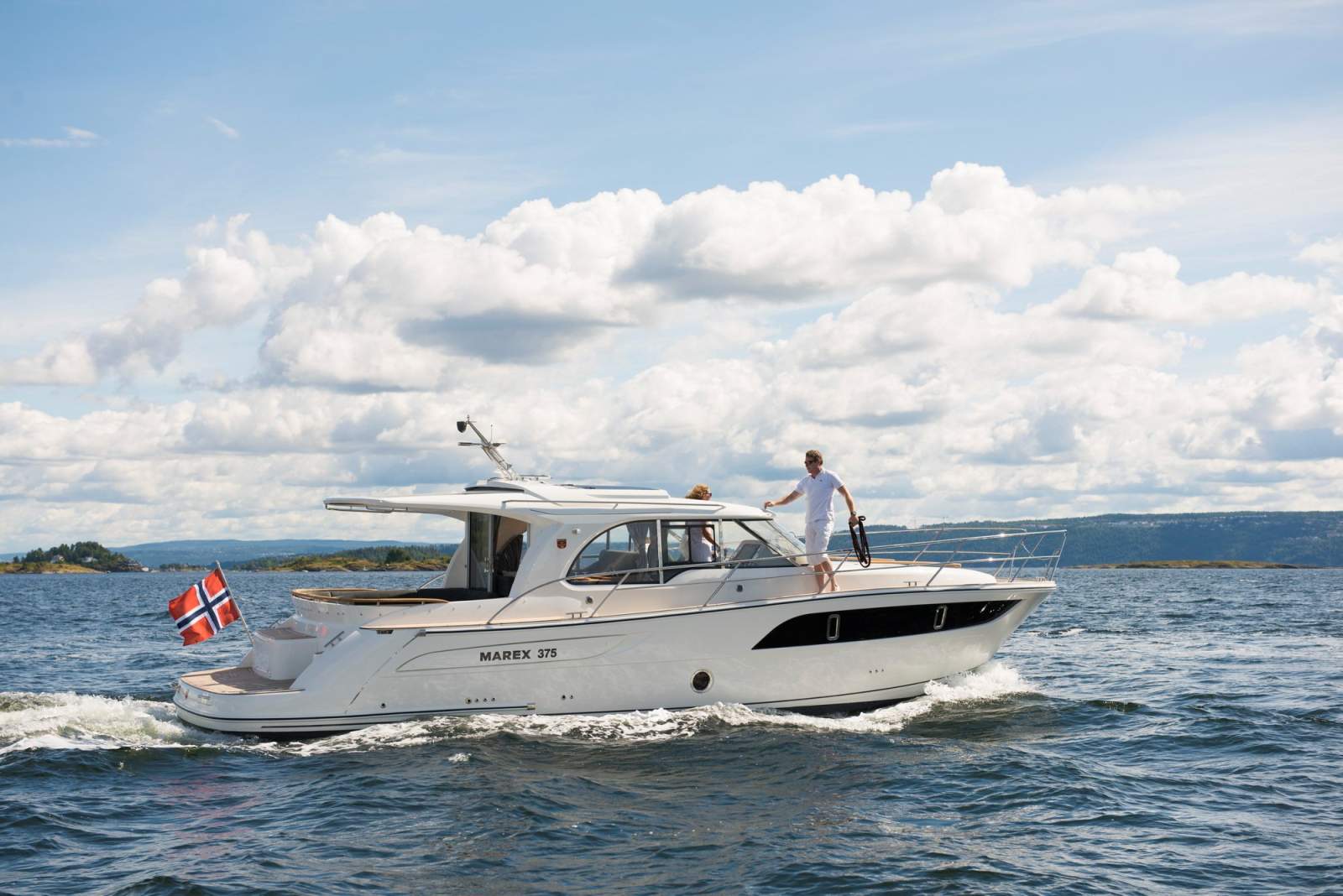 The Marex 375 offers a unique experience on the water that is impossible to forget. At an exciting 12 metres in length, it has a great mix of indoor and outdoor spaces for those who want to spend a long weekend comfortably. With the ability to sleep up to 6 guests (with extra berths), the Marex 375 is the perfect family cabin-cruiser. The Marex 375 offers guests the fantastic feeling of being on a much bigger yacht. It strikes the perfect balance between design and functionality, aesthetics and practicality-for example, the huge bench seat on the swim platform also serves as an impressive deck storage unit for mooring equipment or water toys.