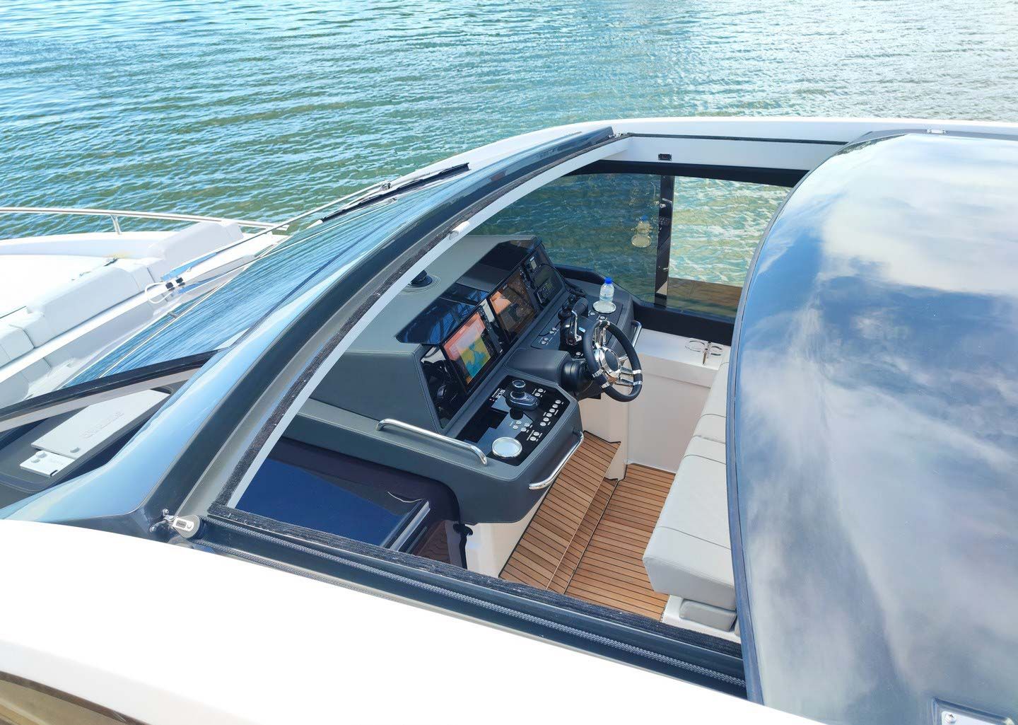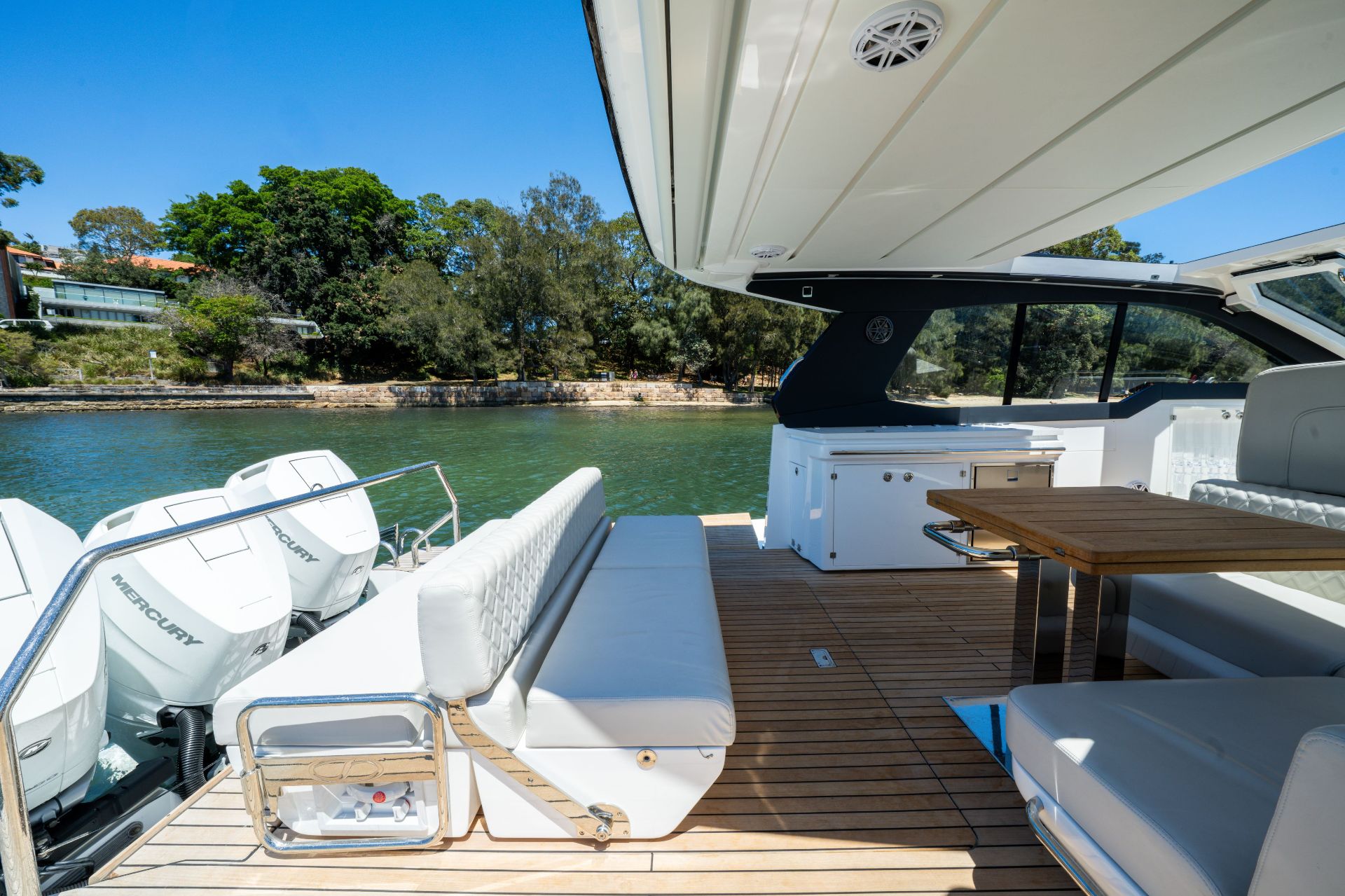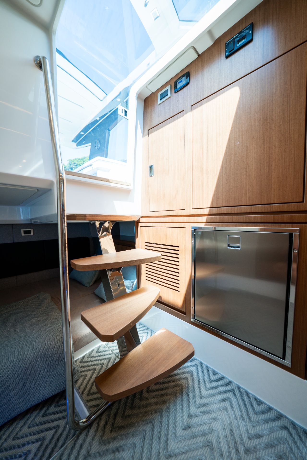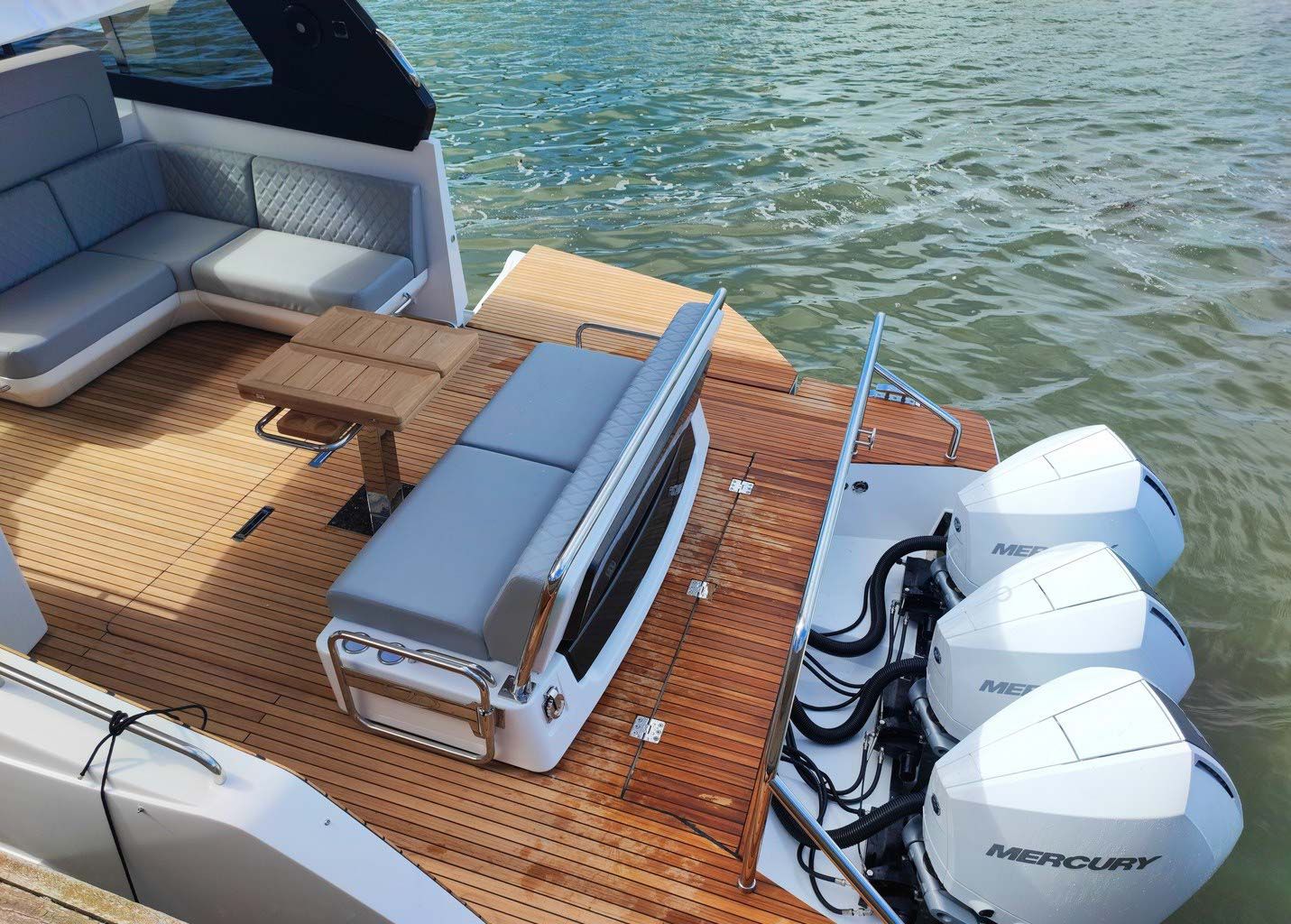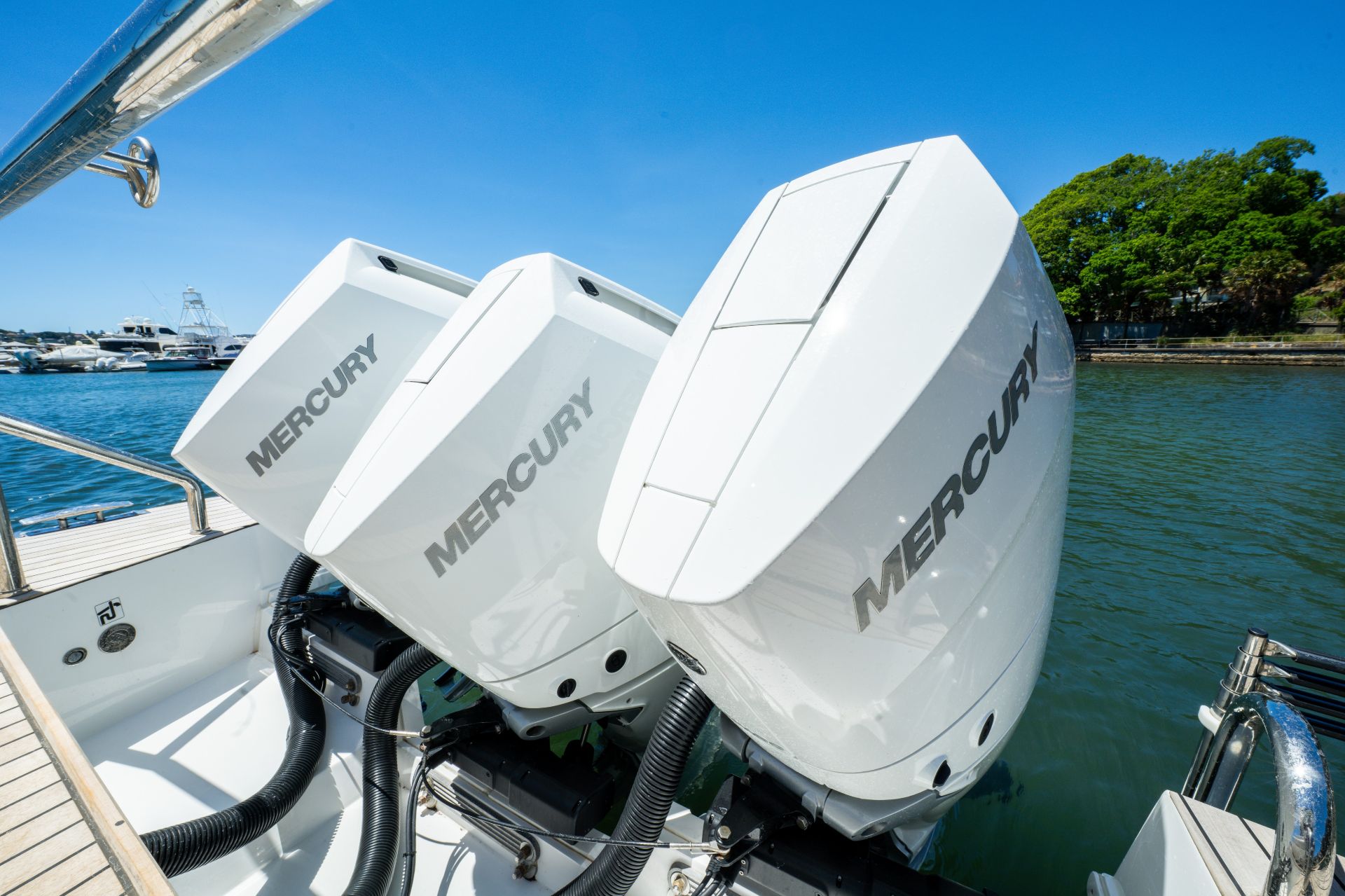 ENGINE: Available with inboard twin Volvo D6-380 or triple Mercury Verado 400 V10 outboard engines