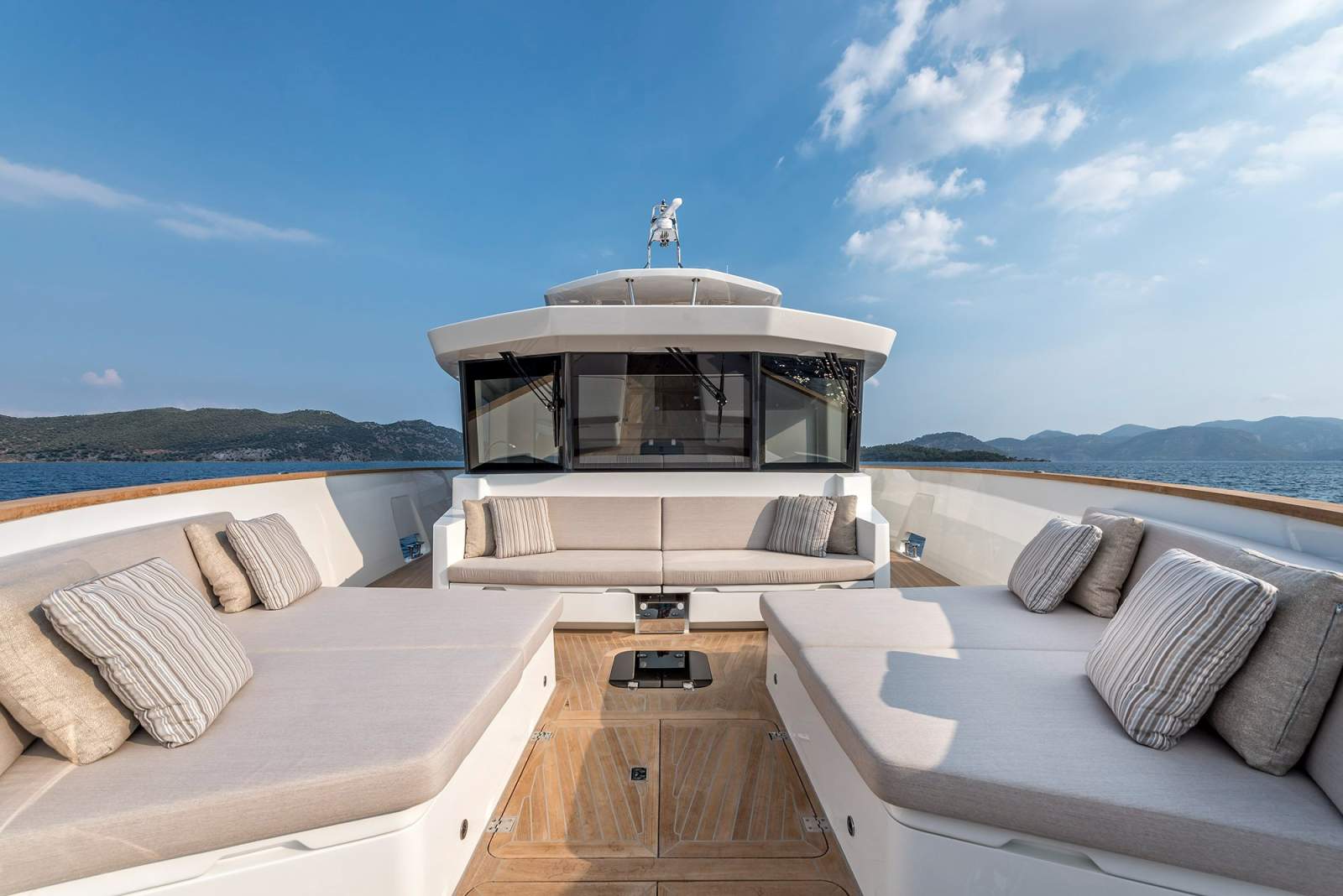 At the stern, folding aft terrace seats transform the aft deck into a waterside lounge. For all-season cruising, the option of a fully glazed flydeck ensures panoramic comfort in any climate. With sharp, commanding lines, the 27XP conveys both strength and elegance. Its robust explorer profile inspires confidence at sea, while its refined styling ensures a striking presence in every harbor.