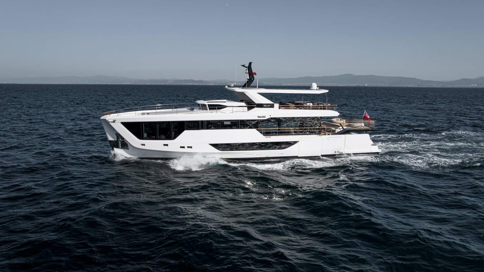 Built in composite to RINA classification, the 30XP is powered by twin MAN D2676 diesel engines supported by four MASE VS 130 VLS generators and two Danfoss 200 kW electric motors. She reaches about 13 knots at full speed, cruises comfortably at 12 knots and can run economically at 8 knots, offering a range of roughly 3,500 nautical miles. The yacht carries approximately 18,500 L of fuel, 2,500 L of fresh water and 2,700 L of black water.