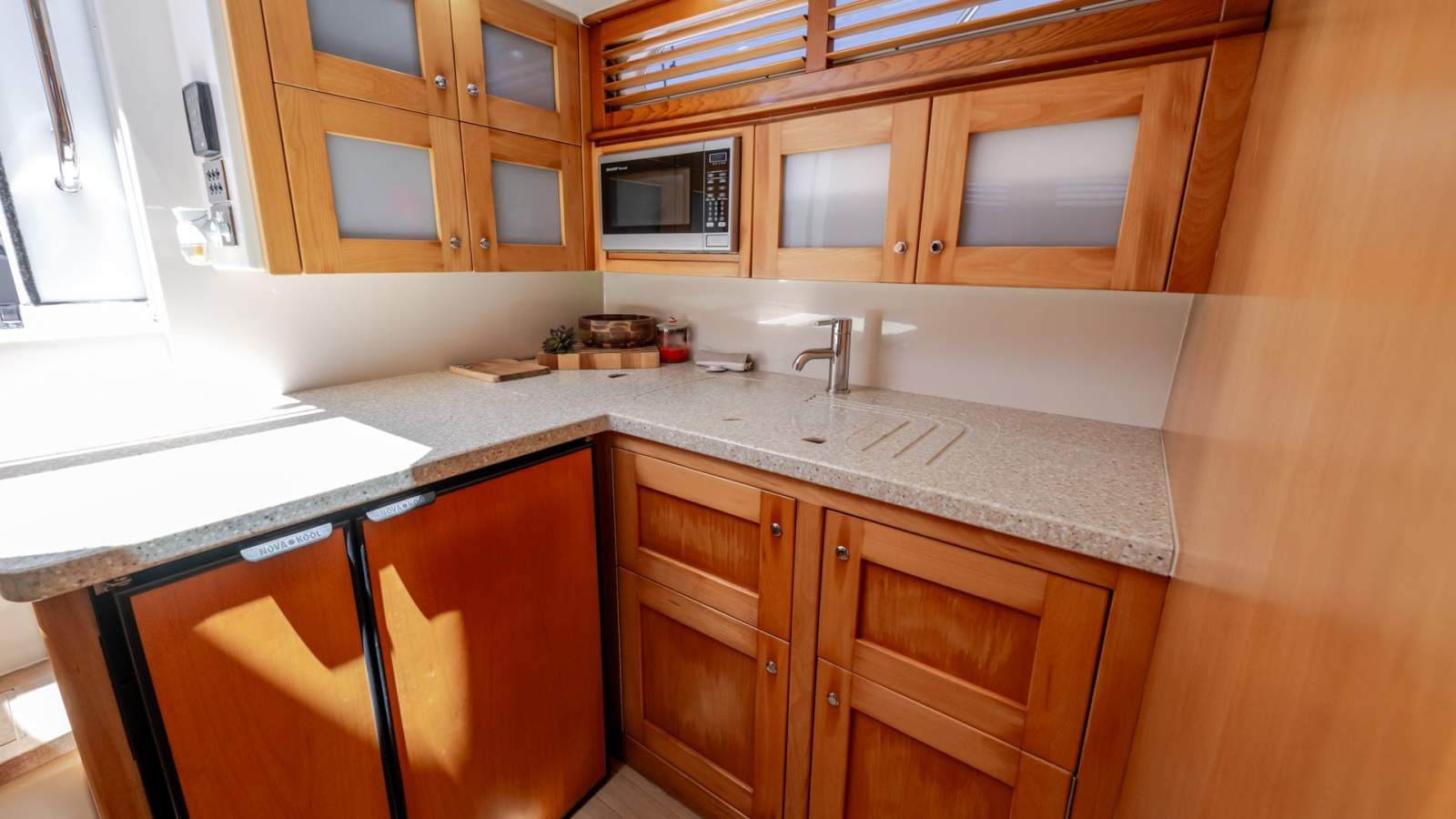 If you're fortunate, you might receive an invitation to a lively gathering in the cockpit, because no other 40 foot single level sports conveyance can match the M400 for entertaining space.