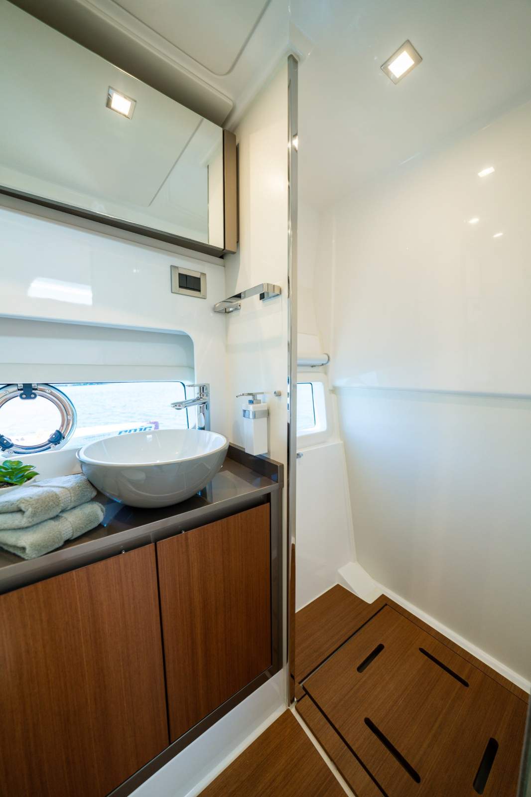 Shower: Fully enclosed shower + Hot and Cold Shower to Swim platform
