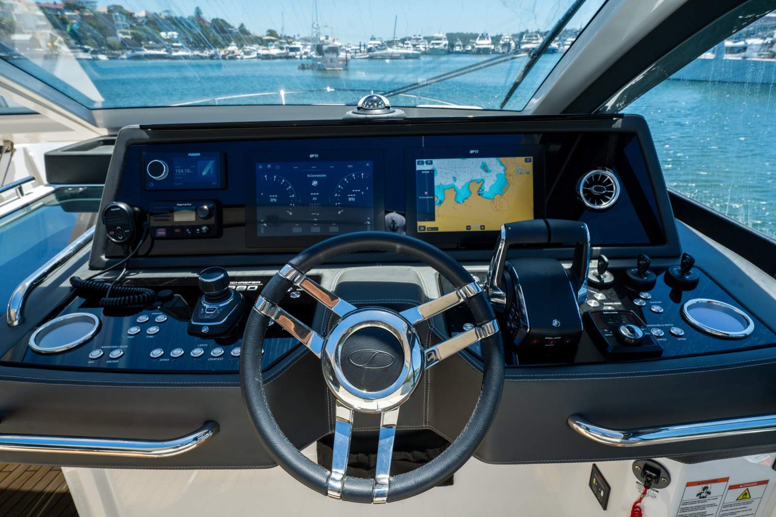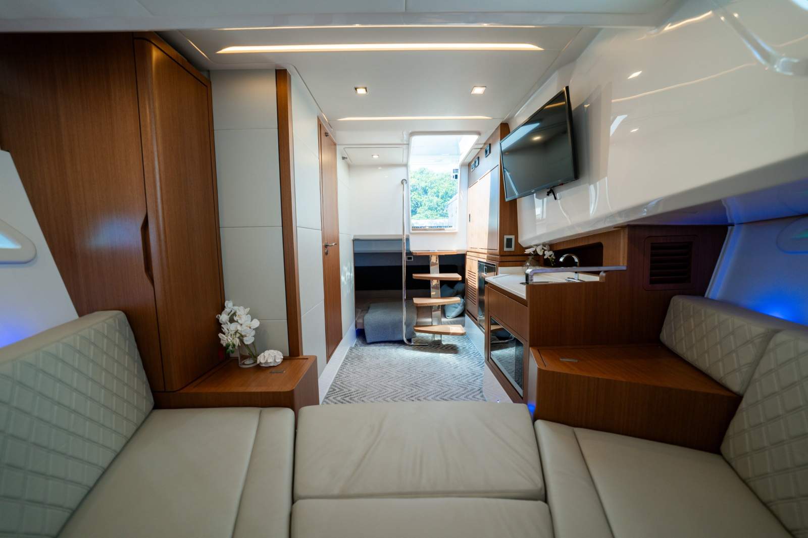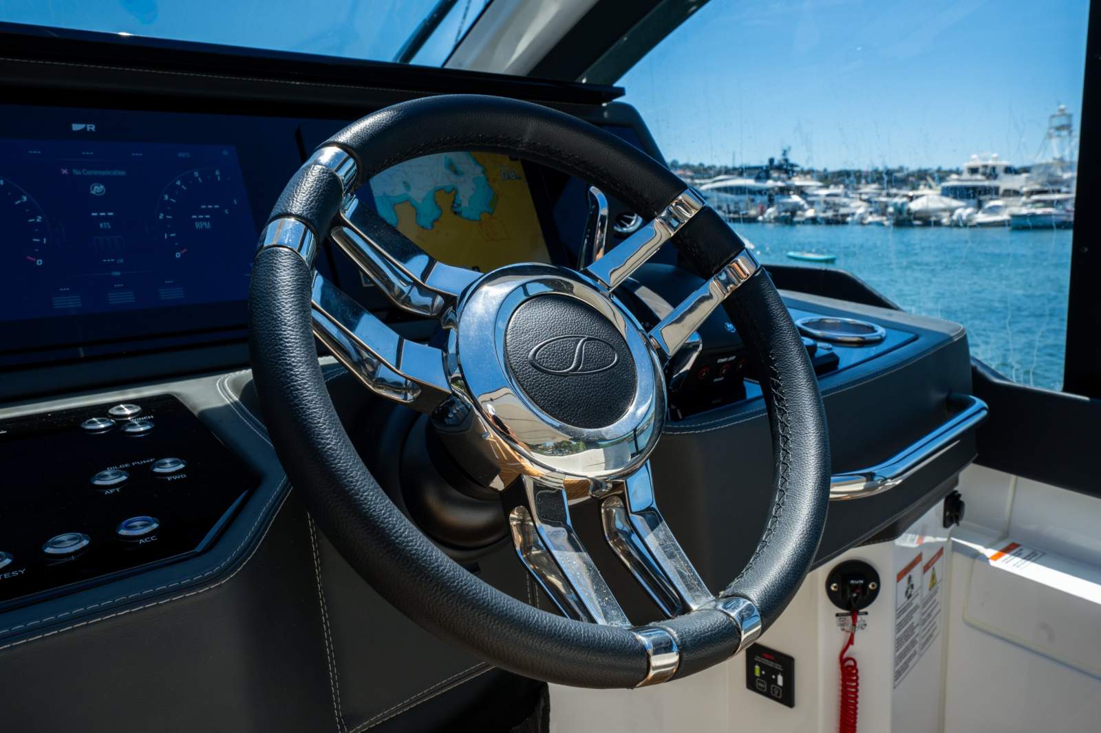 Engine: Available with inboard twin Volvo D6-380 or triple Mercury Verado 400 V10 outboard engines