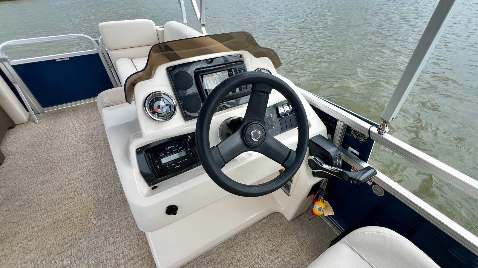 Helm with gauges, stereo system, and comfortable captain's chair